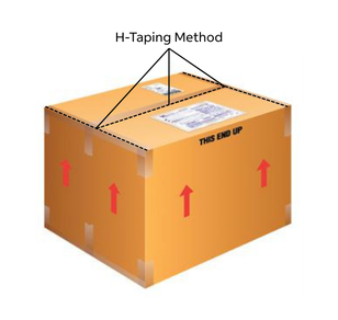 - Apply tape over all box seams, top and bottom of the box (H-Taping), and avoid decorative packaging string.
